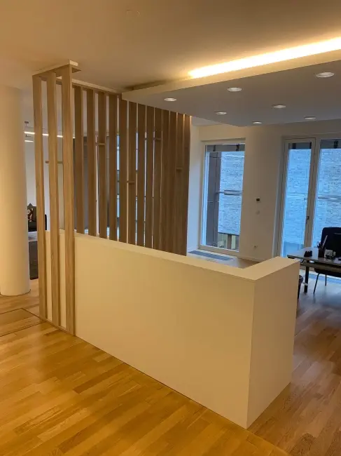Wir realisieren individuelle Lösungen für den professionellen Innenausbau von Büro- und Gewerbeflächen. Unser Leistungsspektrum umfasst die Planung, Umsetzung und den hochwertigen Ausbau moderner Arbeitsumgebungen – vom Architekten geplanten Büroausbau bis zur detaillierten Umsetzung einzelner Elemente.